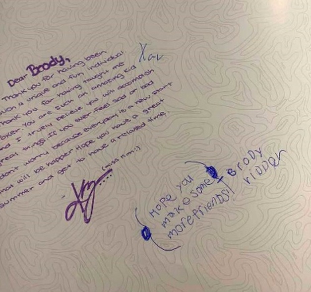 Cuando fue el momento de firmar su anuario, una típica costumbre en Estados Unidos, solo 2 maestras firmaron; junto a otros 2 alumnos que no dejaron más que su nombre, sin mensaje alguno.